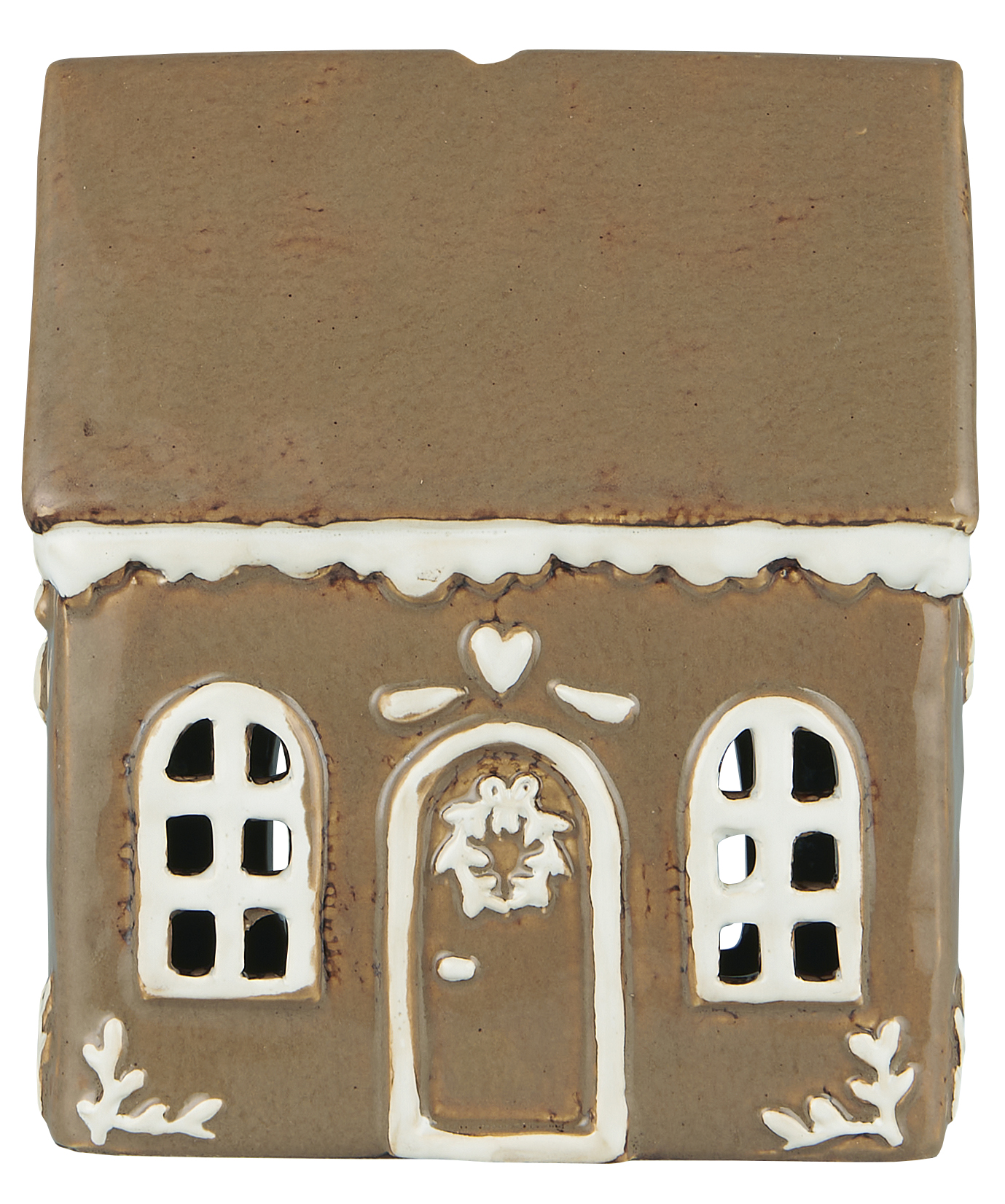 Kaunis piparkakkutalo tuikkukynttilälle. Koko: 8 x 14 x11,5 cm