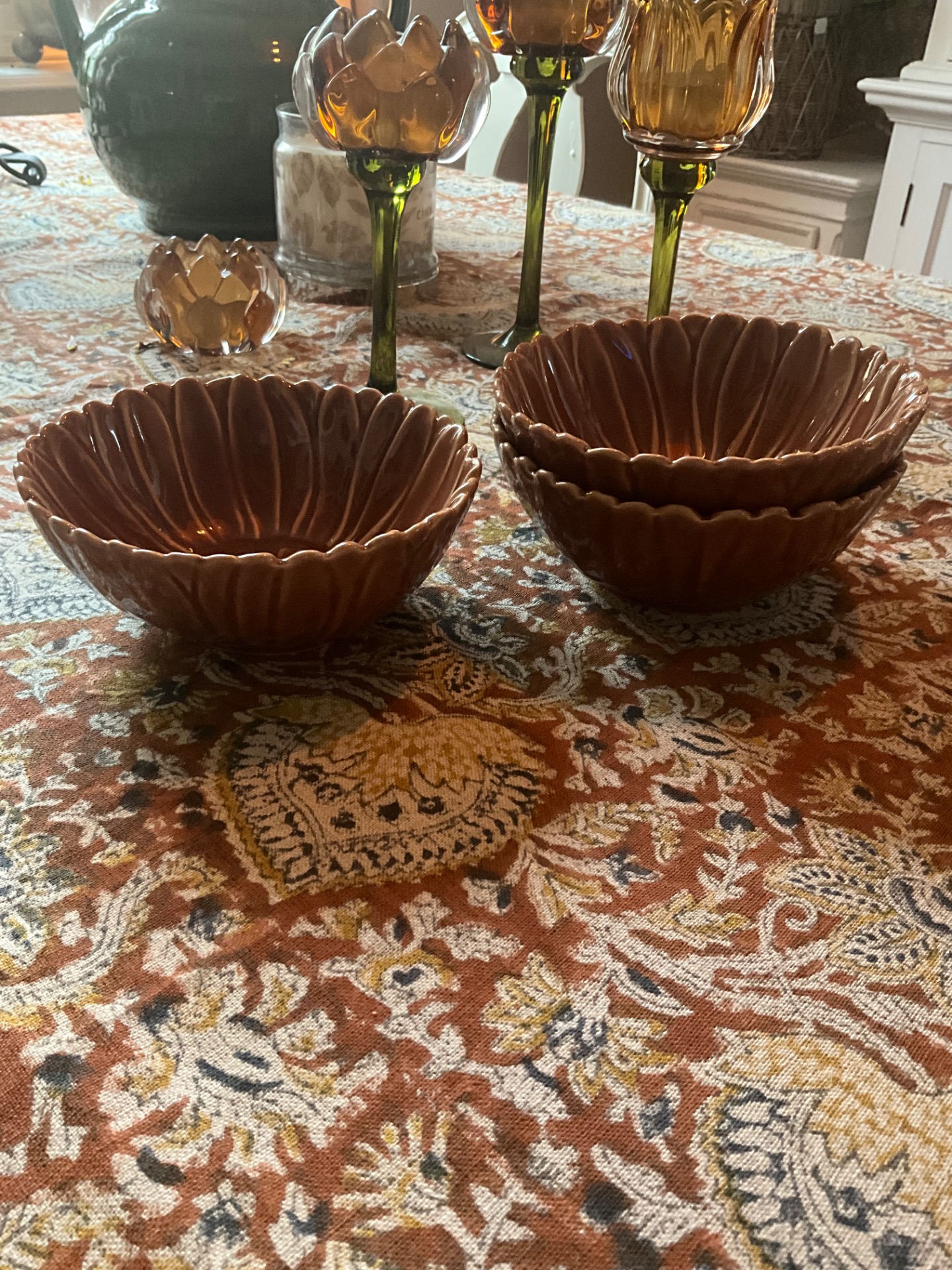 Kauniit kulhot jotka muistuttavat kukan terälehteä. Koko:  14 cm x 6 cm. Konepesun kestävä.